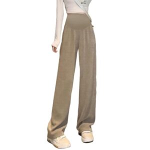 [KARZUKI] マタニティストレートパンツロング 冬 裏起毛 暖かい 厚手 動きやすい プラスベルベット コットンウール ゆったり ハイウエストマタニティショーツ ボトムス 無地 妊婦ガウチョパンツ 産前産後兼用 (カーキ,2XL)