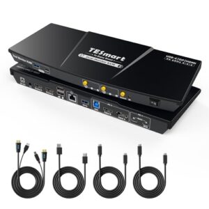 / TESmart 2入力2出力 KVMスイッチ USB-C MST対応 USB3.0 デュアルモニター Type-C 4K@60Hz KVM切替器 2PC2モニター用 切り替え器 ギガビットLANポート ヘッドセットポート EDID機能 ホットキー 充電機能対応 IRリモコン 入力ケーブル付き