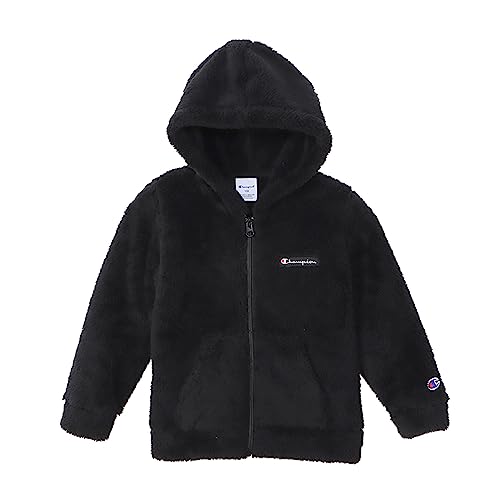 チャンピオンのキッズ用長袖ジップフーデッドジャケット。スクリプトロゴが特徴のシンプルなデザイン。ブラックカラーで、130サイズ展開。快適な着心地で、普段使いに最適です。