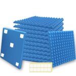 Heavyoff 吸音材は、30*30*2.5cmの防音シートで、壁に貼ることで騒音を軽減。吸音パネルはピラミッド形状の12枚セット、両面テープ付き。楽器の音の対策にもおすすめ、カラーは青です。