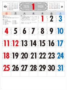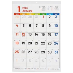 2026年1月始まり 壁掛カレンダー SG288 3色文字月表 晴雨表入り・年間予定表付 2026年