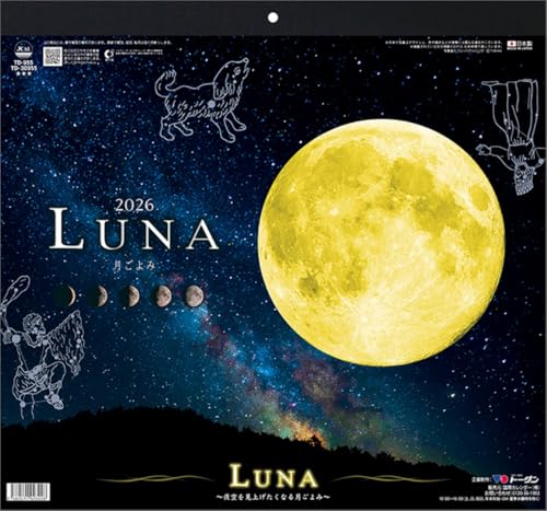 ルナ-月ごよみ- TD-30955は、2026年用の壁掛けカレンダーです。美しい月のイラストや四季のデザインが特徴で、部屋を彩ります。実用的でありながら、インテリアとしても楽しめる商品です。