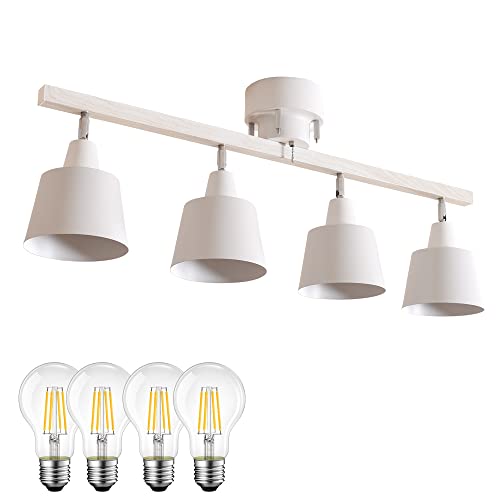 VENTOTAシーリングライトは、4灯のLED対応スポットライトで、E26電球を使用。木目調デザインが美しい北欧スタイルで、リビングやダイニング、和室、寝室に最適です。電球は別売り。