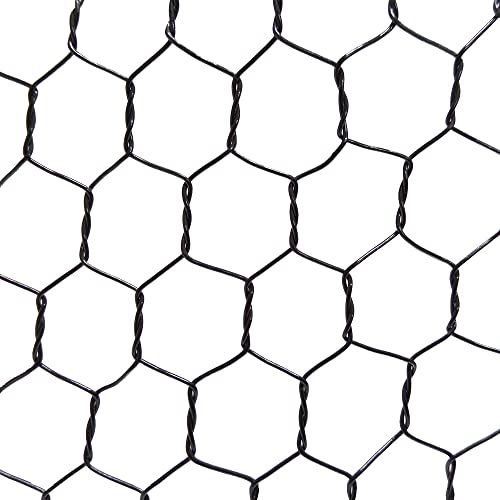 ビニール亀甲金網 ブラック #20は、線径0.85mm、目開き10mmで、幅910mm、長さ30mの製品です。耐久性が高く、景観を損なわずに仕切りや囲いに最適です。