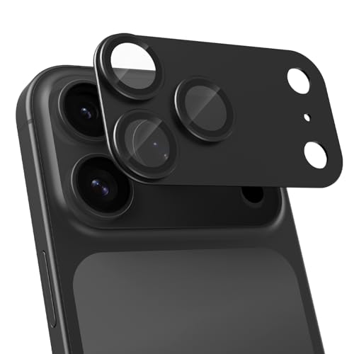 HohotoonのiPhone17 Pro Max用カメラ保護フィルムは、アルミ合金と9H強化ガラス製で、耐衝撃性・極薄設計。AR高透過率で露出オーバーを防ぎ、強力な粘着性が特徴。簡単に貼り付け可能なスマートフォンカメラガード(ブラック)です。