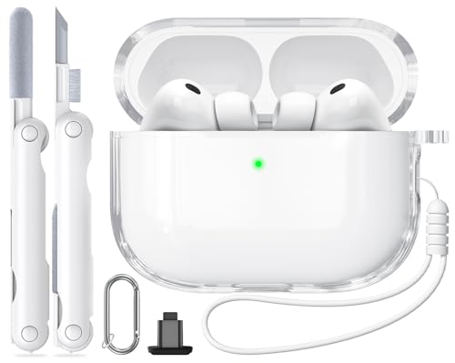 Inesore AirPods Pro3ケース(2025)は、シリカゲルロープ、カラビナ、クリーニングペン付き。TPU素材使用で全面保護、耐衝撃設計。強力な落下防止機能を備えたホワイトカバーです。