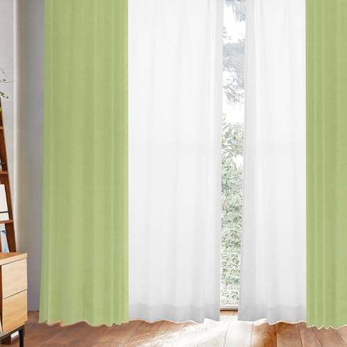 カーテンくれないの遮光カーテンは、100%遮光生地を使用し、断熱・減音効果があります。昼夜目隠しUVカットミラーレース付きで紫外線約92.2%カット。サイズは幅100×丈215cm、色はグリーンとホワイト、4枚組です。