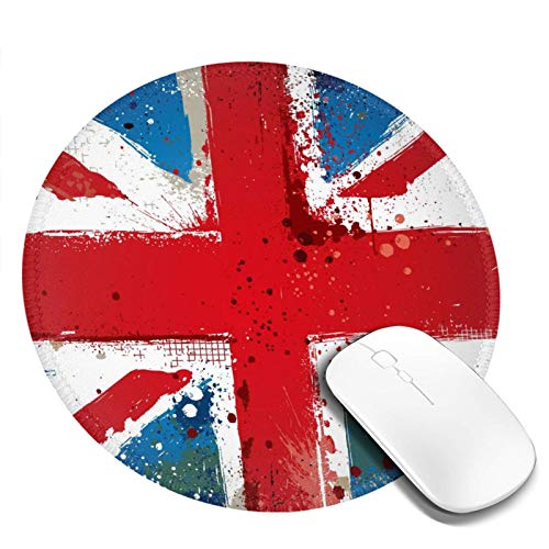 イギリス国旗デザインの丸型マウスパッド。直径20cmでおしゃれな印象。防水・滑り止めゴム製裏面を採用し、耐久性も良好。オフィス、家庭、ゲーム用に最適。