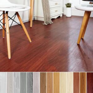 360枚セットの木目調フロアタイル。厚さ1.8mm、貼り付け簡単で接着剤不要。土足OK、撥水・防水・防汚タイプ。サイズ91.44×15.24cm、初心者でもDIY可能。ペット対応、傷防止、滑り止め機能付きでおしゃれな空間に。