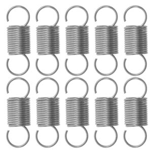 引張りばね(線径1.0-3.0mm、外径6-30mm、長さ40-300mm)は65Mnマンガン鋼製。耐摩耗性と耐久性に優れ、デュアルフック付き。押しばね(2個入り、1.5x14x60mm)も同梱。