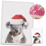 COGNOO DIYドリルダイヤモンドアートキット。大人向けのクリスマス帽子をかぶったコアラのイラスト。サイズ: 15.7×23.6インチ。
