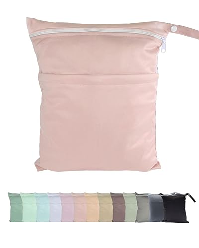 [パノス]防水ポーチは水着やおむつの収納に最適な大容量(30×36cm)で、2ポケット仕様。保育園や旅行に便利なロータスフラワーデザインです。
