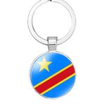 コンゴ国旗のデザインが施されたキーホルダーは、ステンレススチールとガラス素材を使用。男性女性問わずギフトに最適です。サイズはワンサイズで、耐久性に優れた象嵌仕上げ。