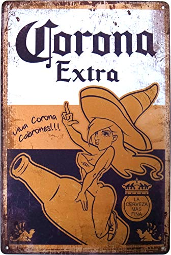 コロナ ビールのブリキ看板Ver.2。サイズ20cm×30cm、A4サイズ相当。アメリカンスタイルのインテリア雑貨で、個性的な空間演出に最適。並行輸入品。