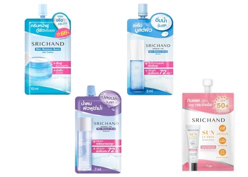 SRICHANDのトラベルセットは、保湿エッセンス、美容液、保湿ジェルクリーム、日焼け止めの4点が含まれた便利なパウチタイプ。敏感肌にも優しく、旅行やお泊りに最適なスキンケアキットです。男女共用で、効果的に紫外線を防ぎます。