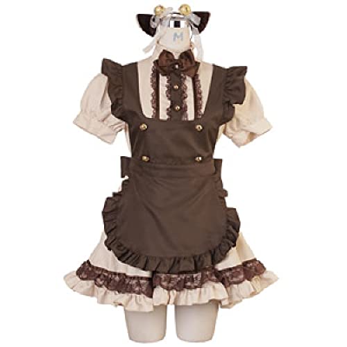 プリンセス猫メイドハロウィンコスプレ。可愛い猫耳付きのメイド服。フルセットで大人・レディース向け、Mサイズ(ベージュ×ブラウン)。男ウケも狙えるセクシーなデザイン。