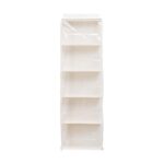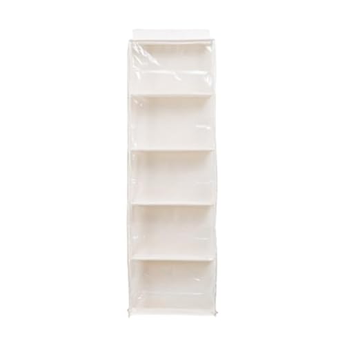 大容量のベージュのぬいぐるみ収納ケース。5段ディスプレイで壁掛け可能、透明カバー付きで防塵。おしゃれなデザインで、コレクションやライブグッズに最適。吊り下げ収納でコンパクト。