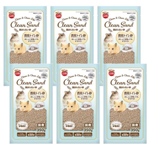 マルカンの固まらない砂は、350gの袋を6つセットにした商品です。吸水性と消臭効果に優れ、水を含んでも固まらない珪藻土を使用しており、ハムスターのトイレ砂として最適です。