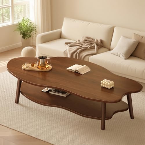 ソファテーブル 2段 コーヒーテーブル ローテーブル リビングルーム 小型 一人暮らし モダン シンプル 雲型 リビングルーム おしゃれ 頑丈 安定 北欧風 組み立て簡単(クルミ色 80×40×40cm) 高価買取中