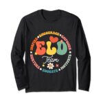 Groovy ELD チームクルー長袖Tシャツは、快適な着心地とスタイリッシュなデザインを兼ね備えています。英語能力開発に最適な機会を提供するプロフェッショナル向けに作られています。