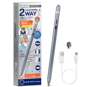 ベルモンド タッチペン いろいろかける君 スタイラスペン タブレット スマホ iPad/iPhone/Android対応 2WAY 極細 金属製ペン先 導電繊維ペン先 2個付属 B1287#3 メタリックグレー