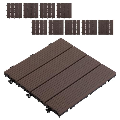 ぼん家具のウッドパネルは、10枚セットの人工木製ジョイントタイル。サイズは30×30cmで、簡単に設置可能。樹脂製でダークブラウン色、カットもできてベランダに最適です。