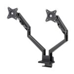 サンワサプライ CR-LAC2403BKは、デュアルモニター対応のガススプリング式モニターアームです。薄型ショートクランプでスペースを有効活用し、ブラックデザインでスタイリッシュ。モニターの角度や高さを自在に調整できます。