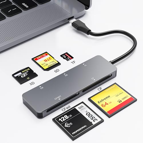 CFast 2.0カードリーダーは、5イン1のデバイスで、最大5Gbpsの転送速度を実現。CFast、SD、CF、XD、TFカードを同時に読み取れ、サンディスクやソニーカードにも対応。
