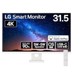 LG Monitor モニター ディスプレイ 32U721SA-W 31.5インチ/4K(3840×2160)/DCI-P3 90%/約10.7億色表示(8bit+FRC)/HDR/アンチグレア/USB Type-C(最大65W給電)/自動明るさ調整/リモコン付属/webOS/ワイヤレス画面共有/スピーカー/スマートモニター