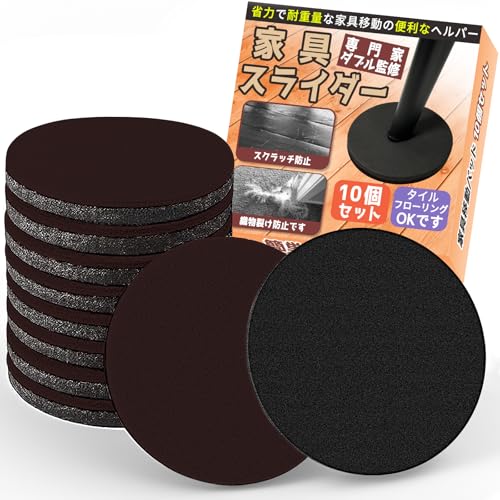 家具スライダー10個セット(直径89mm、耐荷重100kg)。畳やフローリングで家具移動を支援し、凹み防止。再利用可能な便利グッズ。ブラウン色。