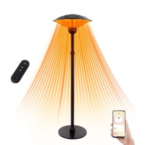 屋外 ハロゲンヒーター 自立型 業務用 電気 1500w パティオ 遠赤外線ヒーター 360°全方位高速暖房 省エネ 静音 テラス暖房 IP44 防水 3段階温度調整可能 高さ160-205cm ポータブル テラスヒーター アプリ/タッチ/プッシュボタン遠隔操作 PSE認証取得済み 過熱保護 転倒防止 屋内/屋外 ガーデン/工場/パーティー/テント用 大空間暖房(58cm 黒 – 小傘)