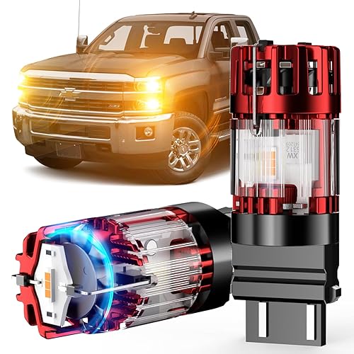 ZONBEAM 3157 PY27/7W アンバー LEDフロントウィンカー電球は、2007-2014シボレーシルバラード2500/3500HD用。CANBUSエラーフリーでハイパーフラッシュなし、パワフルな明るさと冷却ファン搭載。