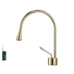 浴室水栓、ブラシ仕上げの金属製で、耐久性のある真鍮製。大理石シンク用のホット・コールドミキサータイプ。カラーバリエーションにイエローあり。