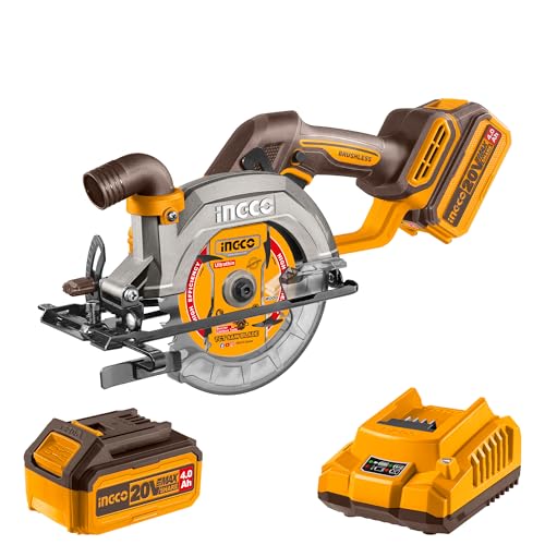 INGCO 20V コードレス丸鋸は、140mm刃を使用し、強力な4.0Ahバッテリーと充電器が付属。コンパクトで使いやすく、木材や薄材の切断に最適です。