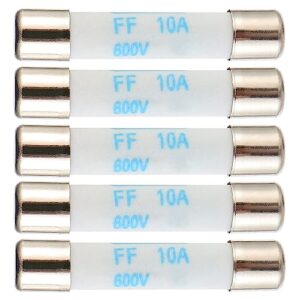 デジタルマルチメーターヒューズ 10A 600V DC 速効ニッケルメッキ真鍮セラミックヒューズ 6.3x32mm FF10A (5パック)