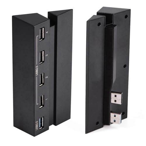 PS4用の高速5ポートUSBハブ。USB 2.0と3.0に対応し、充電やコントローラーの接続に最適。ゲームプレイを快適に拡張します。