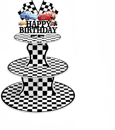 VeriMorphのレースカーカップケーキスタンドは、3段の段ボールホルダーで誕生日パーティーに最適。高速カーをテーマにしたデコレーションで華やかな記念品です。