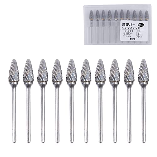 CUREリュータービットは超硬バーとタングステン加工が特長の砲弾型ロ ータリーバー10本セット。シャンク径3mm、ヘッド径6mmで、専用プラケースに収納されています。研磨やドリルに最適。