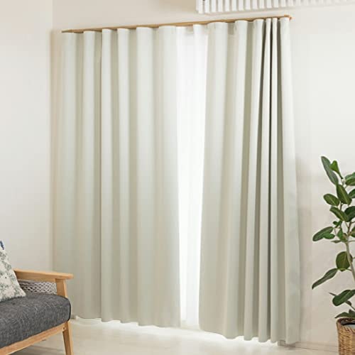 NOKKIの遮光カーテン2枚セット。日本製、1級遮光、UVカット、遮光率99.99%。防炎・断熱効果あり。洗濯機対応でお手入れ簡単。全6色から選べ、幅150cm×丈190cmのペールグリーンです。
