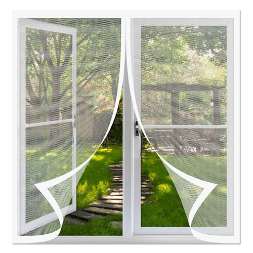 マグネット式の防虫網戸、サイズ185 x 176 cm。取り付けが簡単で通気性も良く、ホワイトカラー。ベランダやサシドアに最適な防塵機能付き。