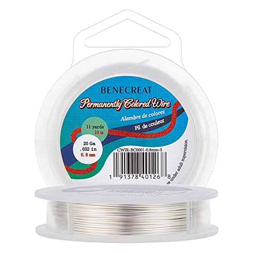 BENECREAT 10m/巻き 線径0.8㎜アクセサリーワイヤー アートワイヤー 光沢 変色防止カッパーワイヤー クラフト銅線 ジュエリー作り 手芸素材 手作り(シルバー) 高価買取中