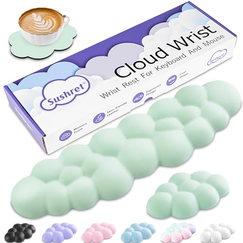 SushretのPUレザーメモリーフォーム付きリストレストは、手首とアームをサポートするかわいいクラウドデザイン。PCやゲームに最適なライトグリーンのクッション。