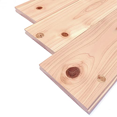 奈良県産の吉野桧を使用した無垢フローリング。サイズは15x140x2000mmで、一等品(節・埋木あり)です。無塗装でエコロキアの製品、1箱に1.68m²(6枚)が入っています。