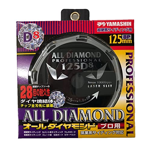 山真製鋸のオールダイヤモンド使用、125mm径で8PのCYT-YSD-125D8は、高い切削性能を実現。耐久性に優れ、石材やコンクリートの切断に最適な製品です。