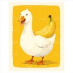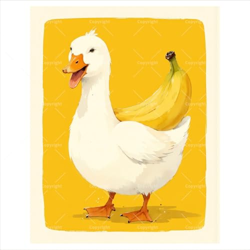 大人向けの漫画スタイルのペイントバイナンバーキットです。DIYバナナダックイラスト、額付きキャンバス12×16インチ、アクリルペイントセット付き。初心者や子供部屋に最適なクリエイティブなギフト。