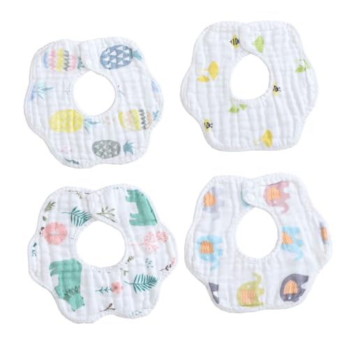 4個入りのベビー用転純綿口水巾。柔らかい肌触りで赤ちゃんに優しい。ダブルボタン式で着脱も簡単。お手入れ楽々で洗濯可能。よだれを防止し、食事にも最適。新生児対応。