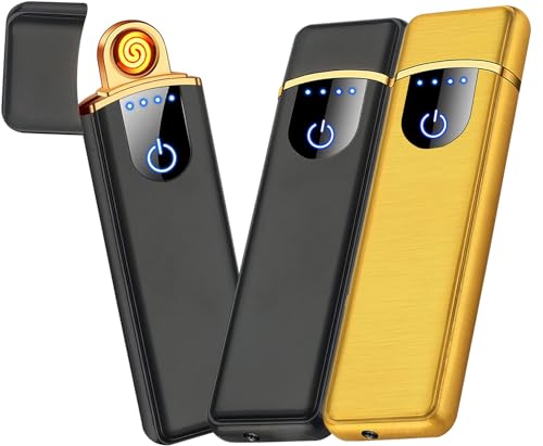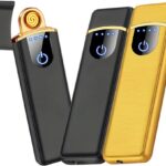 Anfurtの電子ライターは、小型で充電式、ガスやオイル不要の防風設計。薄型で軽量、アウトドアやバーベキュー、お墓参りに最適です。ブラック&ゴールドのセットでプレゼントにぴったり!