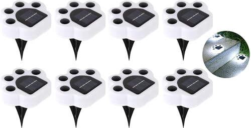 ガーデンライト ソーラーライト 8個セット。自動点灯・防水・省エネで、肉球デザインが可愛らしい。埋め込み式や壁掛け可能、庭や外構のイルミネーションに最適。電気代ゼロで防犯にも効果的。