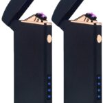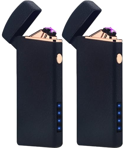 電子ライター、プラズマアーク方式採用の充電式ライター。小型軽量、防風設計でバーベキューやアウトドアに最適。ガスオイル不要で経済的、艶消しブラックの2個セット。