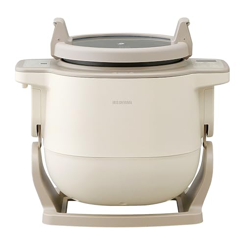 アイリスオーヤマのシェフドラムDAC-IB2-Cは、自動調理と自動かくはんが特長の調理鍋です。簡単操作で多様な料理を楽しめ、アイボリー色がキッチンに馴染みます。